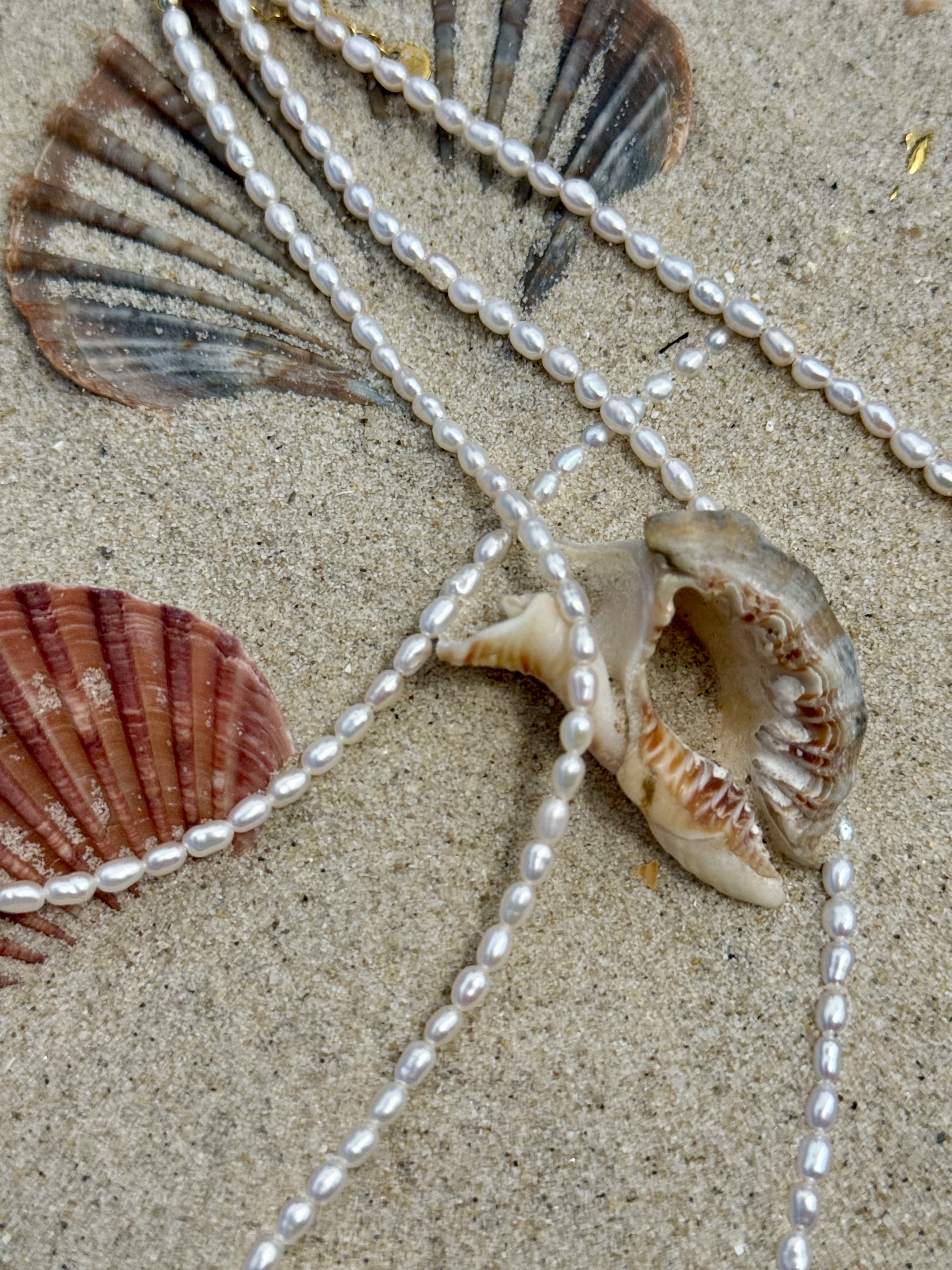 Freshwater Pearls: 0.4 mm x 0.3 mm, carefully selected for brilliance
